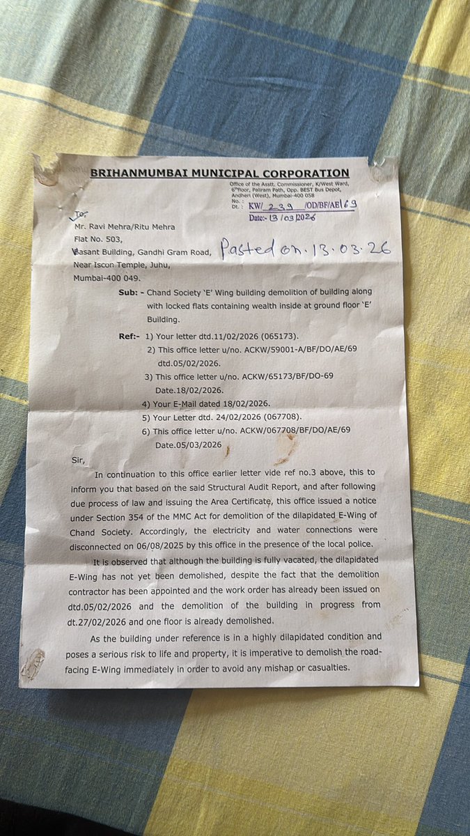 @mybmc @mybmcwardKW th Bmc say dilapidated bldg is not demolished n same breath they say demolition is in progress. Contract given without money to b given. Open loot of valuables kept inside being allowed in exchange for free demolition. @COMumbaicity @MumbaiPolice