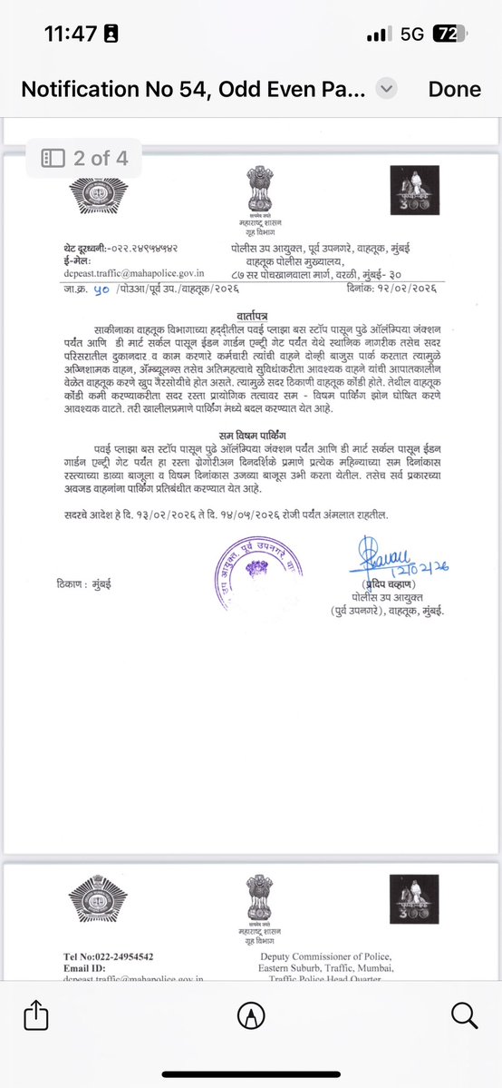 @iYogeshRKadam @Mi_DilipLande @mybmcWardS @mybmc @MTPHereToHelp @HPowai @RatanSharda55 @ThinkerTrips Odd–Even Parking No.54 issued for Powai Plaza–DMart stretch not implemented even after a month. Residents continue to face harassment. Pl ensure immdt signage and enforcement.